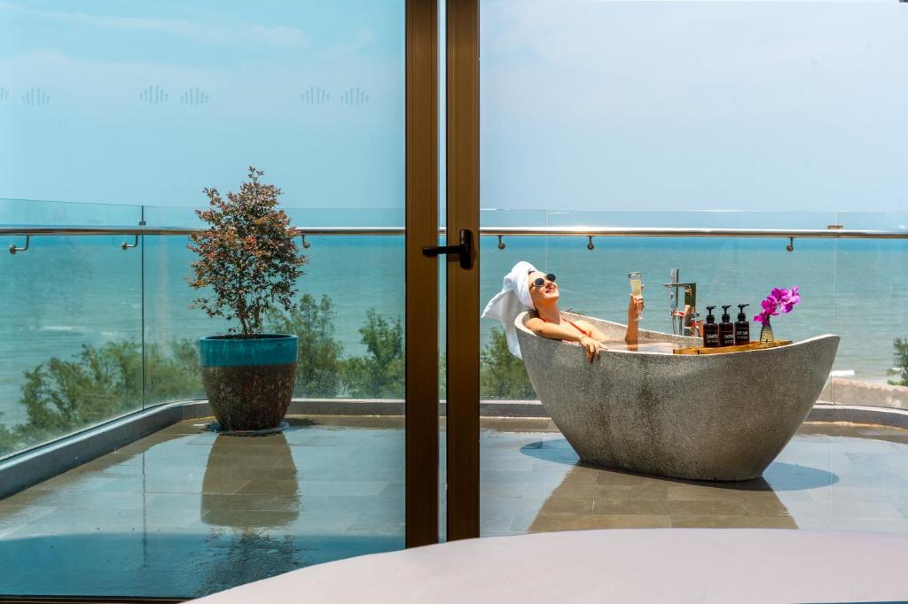 Luxury Balcony Bathtub Outside Ocean View